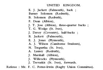 This is one of a series of posts to mark the international Rugby players who died during The Great War. If anyone has further information on the men concerned, I’d be most grateful if it could be added to the thread. Gareth Wilson, Arthur James played for England Internationals: 1: 1910 I+ Arhur Wilson was born on 29 December 1886, son of Henry Bainbridge and Emily Wilson. Played as a Forward for: Glenalmond School, Northern, Camborne, Camborne School of Mines, Camborne Students, Cornwall Profession: Mines Manager/coffee planter Remarks: Olympic silver medal for Rugby (Great Britain v Australia (3-32) 1908). Mining in West Africa; coffee planter in India. War service: 8074, Private, 12th Battalion, Royal Fusiliers, 73rd Brigade, 24th Division. He was killed in action on 1 July 1917, in Flanders, and is commemorated on the Ypres (Menin Gate) Memorial, Ieper, West-Vlaanderen, Belgium [Panel 6 and 8].
