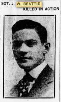 Not really who I was looking for ... but I couldn't resist this brave young soldier ... SERGT. BEATTIE CITED - Brooklyn Boy Is Named In Special Order - Died Aiding Comrades. NY Times March 6, 1919, Thursday Page 8 Sergeant Joseph Walter Beattie, who was killed in the battle of Vierstaat Ridge, in France, received the award for meritorious service, it was learned yesterday by his mother, Mrs. Walter Beattie http://query.nytimes.com/mem/archive-free/pdf?res=9F04E2DF1E39E13ABC4E53DFB5668382609EDE Joseph W. Beattie Sergeant, U.S. Army 106th Infantry Regiment, 27th Division Entered the Service from: New York Died: September 1, 1918 Missing in Action or Buried at Sea Tablets of the Missing at Flanders Field American Cemetery Waregem, Belgium Awards: http://www.abmc.gov/search/detailw.php