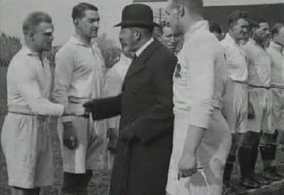 Bunny Chantrill shakes hands with the King before the match v Scotland at Twickenham on 15th March 1924 when England won the Grand Slam