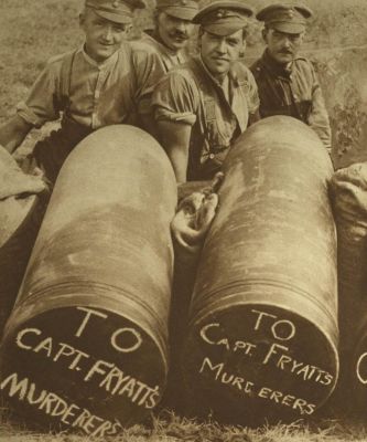 Wonder how many more were personalized ?? British artillery rounds personalized "To Capt. Fryatt's Murderer's" Read more here ..... http://ww1talk.co.uk/forums/showthread.php?t=443&highlight=fryatt
