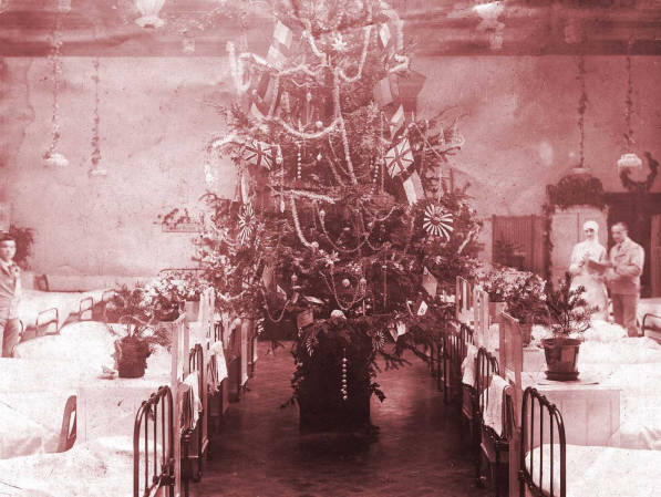 Christmas 1917 Mary Coutts Michie CBE, the Widow of George MCulloch a Scottish Australian mine owner, loaned her Mansion at 184 Queens Gate for use as a British Red Cross hospital during the Great War. It was also known as the Michie hospital. In the middle of the photograph is a large Christmas Tree bedecked with flags of many nations. There is a story that Australian soldiers were particularly welcome to socials at the house. http://www.oucs.ox.ac.uk/ww1lit/gwa/item/3794?CISOBOX=1&REC=1 And just a little off topic but interesting nonetheless ....... McCULLOCH, GEORGE (1848-1907), station manager, was born on 22 April 1848 in Glasgow, Scotland, son of James McCulloch, contractor. Educated at High School and at the Andersonian University, Glasgow, he followed pastoral pursuits in Mexico and elsewhere with little success before arriving at Sydney in the 1870s. His uncle, James McCulloch, appointed him manager of McCulloch, Sellar & Co.'s Mount Gipps station, near Broken Hill, with an eighth share of the profits; it was a well-developed property of 540,000 acres (218,533 ha) with 71,000 sheep in 1877. http://www.adb.online.anu.edu.au/biogs/A050161b.htm