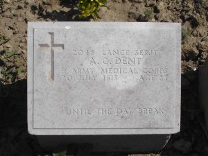 In Memory of Lance Serjeant AUSTIN CAMPBELL DENT 2046, 88th (1st/1st East Anglian) Field Amb, Royal Army Medical Corps who died age 23 on 20 July 1915 Son of Mr. J. M. and Mrs. A. C. Dent, of 10-13, Bedford St., Covent Garden, London. Remembered with honour LANCASHIRE LANDING CEMETERY Austen Campbell DENT Place or Date of Birth - Forest Gate, Essex Service Number - 2046 Rank - a.L-Sjt Unit - 1st East Anglian Divisional Field Ambulance Attached To - 88th (1/1st E. Anglian) Field Ambulance Enlistment Location - Ipswich, Suffolk (Enfield, Middlesex) Outcome - Died of Wounds Date Died - 20/07/1915 Age Died - 23 Where Buried and/or Commemorated - Lancashire Landing Cemetery, Helles, Gallipoli - Turkey Other Information - Austen was the son of Mr J M and Mrs A C Dent of 10-13 Bedford St, Covent Garden, London. http://www.ramc-ww1.com/profile.php...10837&osCsid=b9b7a416b8d24c1f754d526cf0b75fb2 And I believe this is his brother ...... In Memory of Private PAXTON MALABY DENT 2083, 4th Bn., Seaforth Highlanders who died age 24 on 28 April 1915 Son of Joseph Malaby Dent and Alexandra Campbell Dent, of "Crohamleigh", Harewood Rd., South Croydon. Educated at Mill Hill School, and Worcester College, Oxford. Remembered with honour CABARET-ROUGE BRITISH CEMETERY, SOUCHEZ Paxton Malaby Dent Service: Army Date of birth: 10 October 1890 Year of entry to Mill Hill: 1906 House at Mill Hill: Burton Bank Record - Hill Lodge, Enfield. Born 10th October, 1890. 201, M.H. 9, 1906 to 7, 1909, Burton Bank. Private, 4th Seaforth Highlanders. Served in France. Killed at Neuve Chapelle, 28th April, 1915. Son of Mr. and Mrs. Joseph Malaby Dent. http://www.millhillatwar.org.uk/Search_Result_view.aspx?Id=44