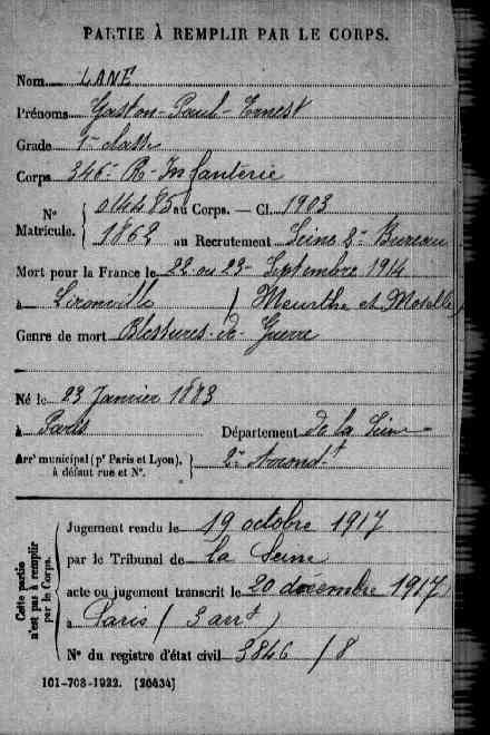 This is one of a series of posts to mark the international Rugby players who died during The Great War. If anyone has further information on the men concerned, I’d be most grateful if it could be added to the thread. Gareth Lane, Gaston played for France Internationals: 16 : 1906 NZ- E- ; 1907 E- ; 1908 E- W- ; 1909 E- W- I- (1t) ; 1910 W- E- ; 1911 S+ W- ; 1912 I- W- E- ; 1913 S- Gaston Lane was born on 23 January 1883 in Paris. Played as a Wing/centre for: Racing Club de France Profession: Engineer War service: Soldat 1ère Classe,346ème Regiment d’Infanterie He was killed in action on 22, 23 or 24 September 1914 at Stenay/Lerouville