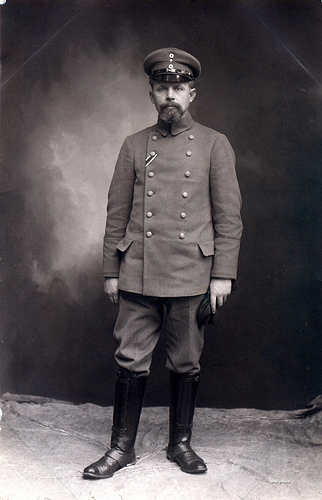 I always seem to be drawn to Chaplains .... this handsome man is a German Catholic priest ... does anybody know anything about him please ? Studio portrait of Catholic Priest / Feldgeistliche, Georg Timpe sent from Kurland (now Latvia) in July 1916. Catholic and Lutheran Feldgeistliche wore a small enameled cross on their Schirmmutze (cap), between the two kokarden. A simple Google search on Georg Timpe revealed he authored a paper entitled, Die deutsche St. Bonifatius Mission in London, 1809–1909, London 1909. Photographer - J. Schlotfeldt, Bergedorf. http://www.flickr.com/photos/29007475@N08/4011182296/in/pool-greatwar
