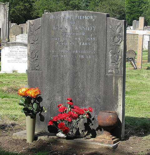John Cassidy, son of a farmer was born at Littlewood, Slane Co. Meath on January 1st 1860. He served his apprenticeship as a bar assistant in White Horse Hotel Drogheda. It was then said that he spent most of his spare time etching and drawing and painting. some of his paintings of 1880 vintage are to be found in Drogheda, most notably The Bathe House and a Street Scene in Drogheda 1880. Both of these pictures hang in Drogheda Corporation Offices. Aged 20 years John went to work in Dublin, where he attended night classes in Art School. He gained a scholarship to study in Milan. Two years later he settled in Manchester where he spent the rest of his life. He studied at the Manchester School of Art and established a studio at Lincoln Road. As his reputation grew he exhibited at the Royal Academy,the Hibernian Academy and in Manchester City Art Gallery. His public works can be found at various sites around Manchester and throughout Britain. Some of his most famous sculptors are the Edward Colston statue in Bristol, the Hygeia Monument in Aberdeen, the Ben Brierly statue in Queens Park Manchester and The Ship Canal Digger in Manchester City Art Gallery. Perhaps his greatest achievements are to be seen in the famous John Rylands Library in Manchester. Here John fashioned a group of statues entitled Theology Directing The Labours Of Science and Art to adorn this august building. He also created two matching statues in white marble of John Rylands and his wife Enriqueta which stand guard over the two ends of the Reading Room. His many war memorials are much admired. John's best known work in Ireland is a full lenght figure of Queen Victoria in Belfast. He died on July 19th 1939 and was buried in Southern Cemetary in Manchester. http://www.johncassidy.org.uk/heatonmoor.html http://www.johncassidy.org.uk/eccles.html http://www.johncassidy.org.uk/cassidy2f.html http://www.johncassidy.org.uk/cassidy2e.html http://www.johncassidy.org.uk/peover.html http://www.johncassidy.org.uk/skipton.html An entry was placed in the newspaper 'deaths' columns - His gravestone carries the epitaph 'His hands fashioned the beauty he saw.'