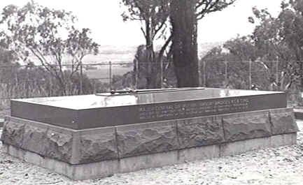 Major General Sir William Throsby Bridges KCB, CMG (18 February 1861 - 18 May 1915) Served with Australian forces during World War I, and was the first Australian to reach general officer rank. He was also the first Australian general to be killed during the war - at Gallipoli on 18 May 1915. Born in Greenock, Scotland, he was educated at Ryde on the Isle of Wight, at the Royal Naval School at New Cross, London and at Trinity College, Port Hope, Ontario, Canada. He studied at the Royal Military College of Canada in Kingston, Ontario, Canada but left before graduating. In 1879 he joined his family who had settled in his mother's home town of Moss Vale, New South Wales. Australia's top loss General Bridges at Gallipoli in 1915 - first commandant of Duntroon - and commander of the Australian 1st Division. http://www.unsw.adfa.edu.au/~rmallett/Generals/bridges.html "SANDY" General Bridges' favourite charger - 1 in 169,000 !! The only one of the 169,000 horses that left Australia for WW1 war service to return - was " Sandy," General Bridges' favourite charger. He was brought back with his master's mortal remains and, after the funeral procession, turned out to grass - a few years later, becoming blind and debilitated, he was mercifully destroyed. His head is mounted in a show case originally displayed at the 1st Australian War Memorial Museum in Sydney and later in Canberra at the AWM. http://www.diggerhistory.info/pages-leaders/ww1/bridges.htm http://www.adb.online.anu.edu.au/biogs/A070415b.htm Canberra, ACT. 1946-03-25. The top of the tombstone showing the marble sword on Major General Sir William Throsby Bridges' grave, Royal Military College, Duntroon.