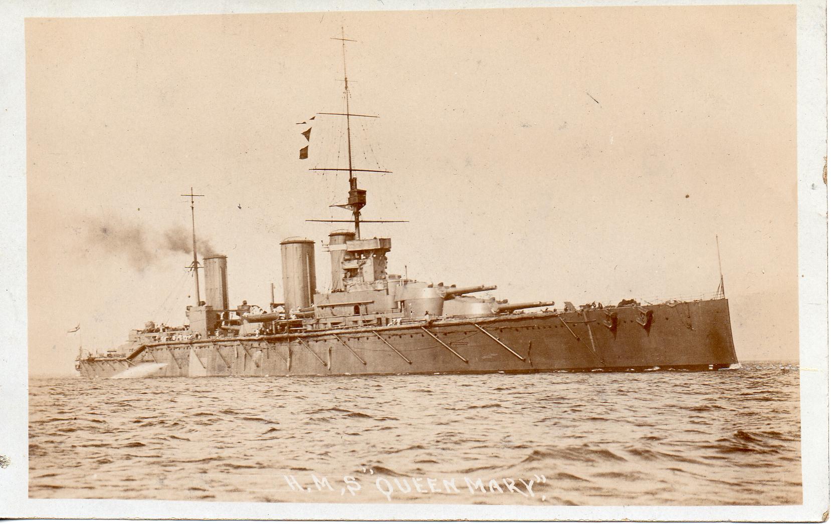 Jutland Bank, 31st May 1916. Extract from the Official History; " Naval Operations" by Sir Julian S. Corbett. 1923 For Admiral Hipper was in action again. At 4.10, being then eleven miles away abaft the beam of the Lion, he inclined inwards a couple of points, and as Admiral Beatty simultaneously altered still more to port to press his van, he was able at 4.17 to re-open fire at extreme range. The Lion had not yet been able entirely to master the fire that was smothering her. To the Germans she must have been invisible, for the Derfflinger, mistaking the Princess Royal for the flagship, began firing on the next astern, which the Seydlitz was also engaging. Thus the Queen Mary, at from 15,800 to 14,500 yards, became the target of both these ships. For about five minutes she stood it gallantly. She was fighting splendidly. The Germans say full salvoes were coming from her with fabulous rapidity. Twice already she had been straddled by the Derfflinger, when at 4.26 a plunging salvo crashed upon her deck forward. In a moment there was a dazzling flash of red flame where the salvo fell, and then a much heavier explosion rent her amidships. Her bows plunged down, and as the Tiger and New Zealand raced by her to port and starboard, her propellers were still slowly revolving high in the air. In another moment, as her two consorts were smothered in a shower of black debris, there was nothing of her left but a dark pillar of smoke rising stemlike till it spread hundreds of feet high in the likeness of a vast palm tree. Two such successes were beyond anything the Germans had reason to expect. Admiral Scheer's plan had broken down, and yet they were gaining even more than he could have hoped for...... Foot Note: "The casualties were 57 officers and 1,209 men killed; 2 officers and 5 men wounded. One officer and one man were subsequently rescued by German destroyers." http://www.northeastmedals.co.uk/britishguide/jutland/hms_queen_mary_casualty_list_1916.htm I found this young sailor while I was looking for something else ..... what an awful lot of casualties !! In Memory of Able Seaman WALTER EDWARD SCOTT J/12301, H.M.S. "Queen Mary.", Royal Navy who died age 21 on 31 May 1916 Son of Alfred Ernest and Ellen Scott, of The Cottage Sewerage Works, Twickenham, Middx. Remembered with honour PORTSMOUTH NAVAL MEMORIAL