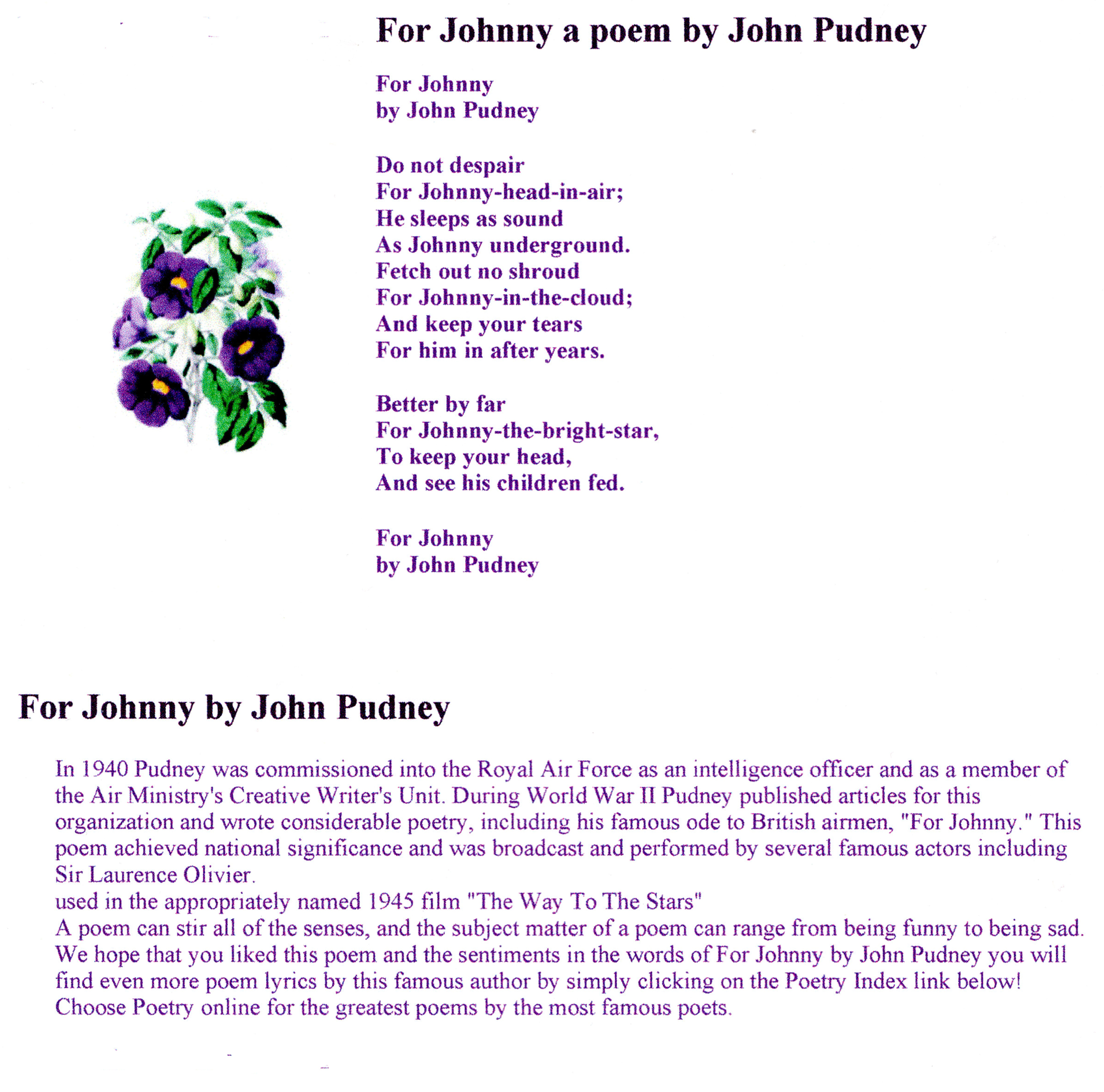 Ode to johnny Hi Andy, I have checked through and didn't see this. So I hunted the net and found it. It has always stayed in my memory, long after visions of the film faded. Hope you like it Cheers Keith