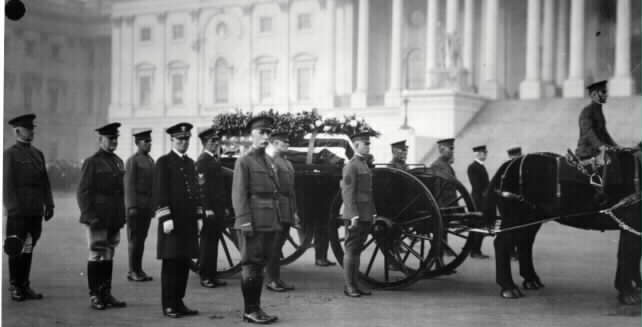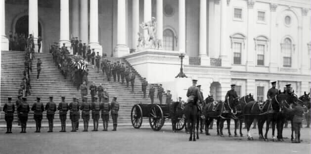 The bodies of many soldiers killed in World War I could not be identified. To honor them, the remains of one were brought to the U.S. Capitol to lie in state, and on Armistice Day 1921 they were ceremoniously buried in Arlington National Cemetery. The tomb bears the inscription "Here rests in honored glory an American soldier known but to God." Congress later directed that an "Unknown American" from subsequent wars - World War II, Korea and Vietnam - be similarly honored. Because of the development of DNA technology, the unknown soldier from the Vietnam War was recently exhumed and identified. There may never be another unknown soldier. http://www.arlingtoncemetery.net/unk-wwi.htm